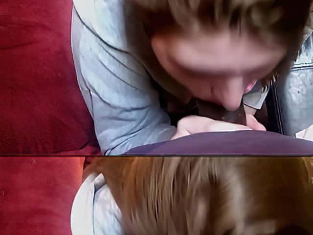 Babe sucking cock on living room floor