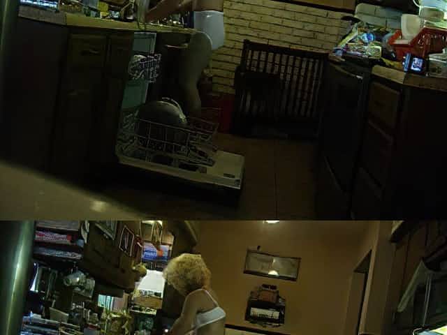 Upskirt of Mom in the kitchen with white panties