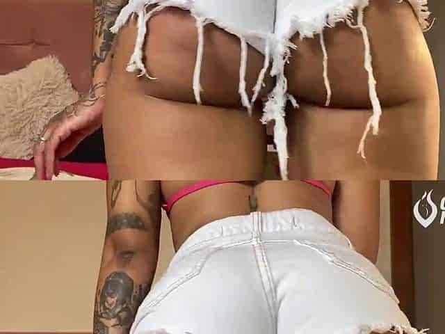 Hawt brunette hair's constricted shorts