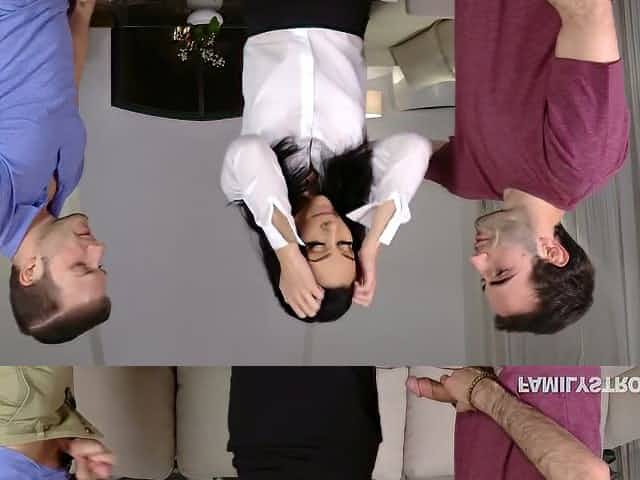 Exquisite brunette finally got her DP fantasy in place