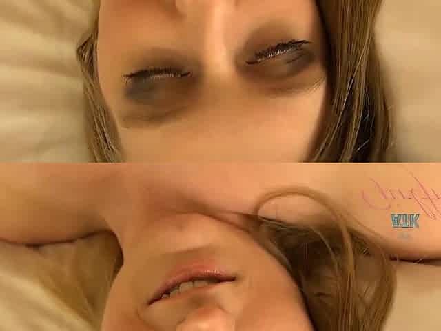 BLONDE SLUT gets a THROATPIE and SWALLOWS while her Eyes are wide open