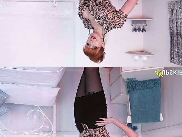 Ginger cougar Red spreads stockings legs wide open and shows her pussy