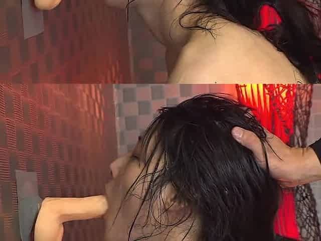 Wife sucking, taking it in the back and trying little gaging