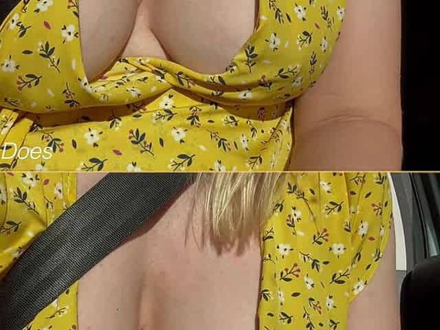 Hawt golden-haired woman i'd like to fuck wife driving car topless flashing perky milk cans