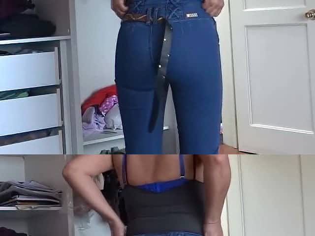 GREAT BOOTY OF MY HIRSUTE, OLDER WIFE, IN JEANS, FONDLES, SPY
