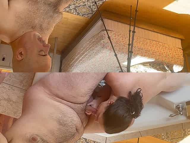 Hot wife missy gives intense blowjob to her husband George while sharing cum kisses