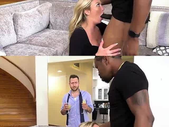 Sissy's husband watches beautiful blonde whore wife get fucked by a real bull by Cuckold House