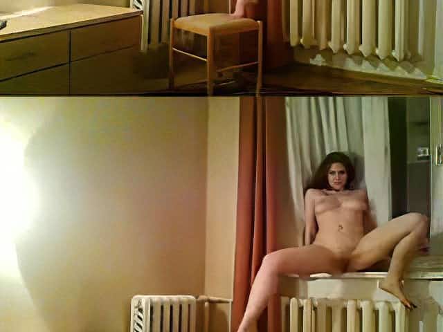 Slim girl masturbating by the window