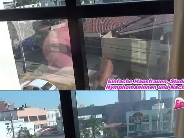 Big booty, window exhibitionist, standing fuck