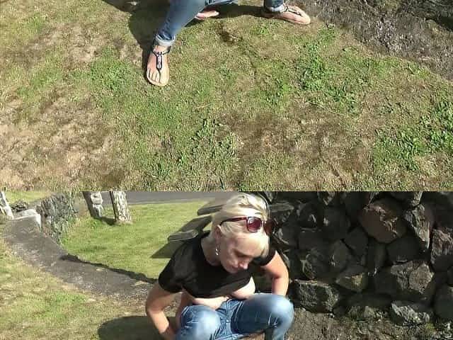 The husband agrees by lending the blonde woman to her friends who fuck her in gangbang with double anal penetrations