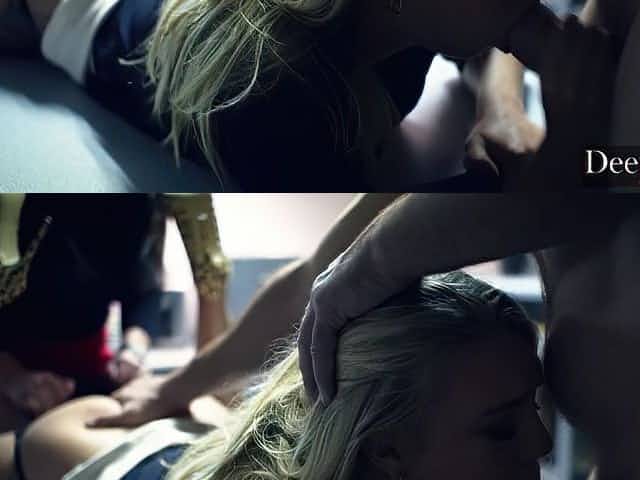 Stunning blonde woman Kascha sucking big dick before getting screwed hard doggy style