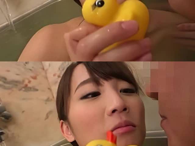 Japanese woman having fun with her husband in the bathtub
