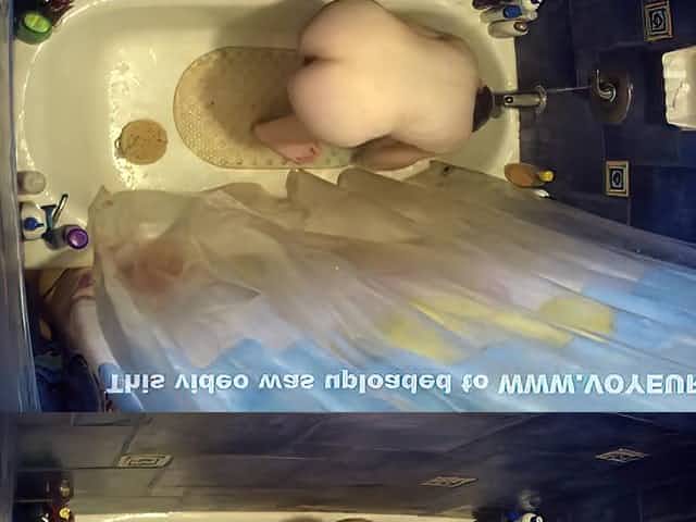 Busty woman peeped while showering