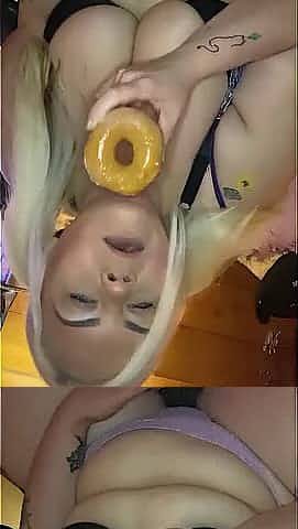 Breasty Big Beautiful Woman eating donuts with abdomen play!