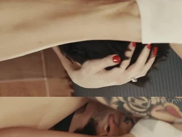 Foot fetish video with horny couple banging in the bathroom