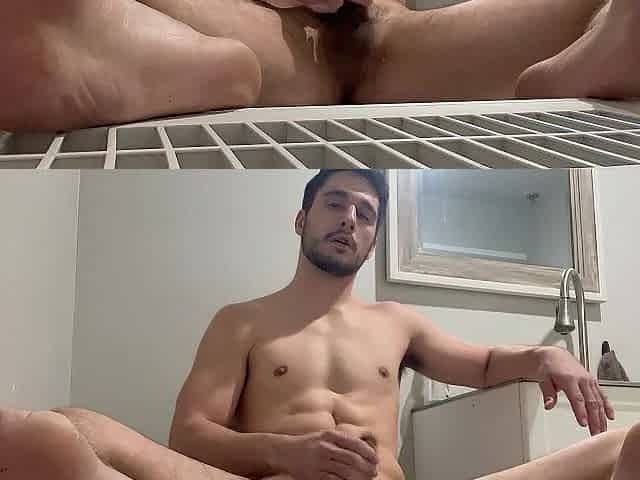 Excited after my workout leads to jizz flow in gym bath