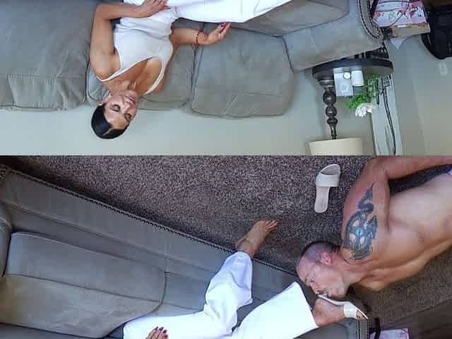 Horny Pussy and Foot Licking Show for a Beautiful Horny Brunette Babe