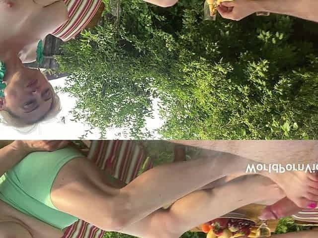 Mature Couple Enjoy Feet Worship and Blowjob in the Garden