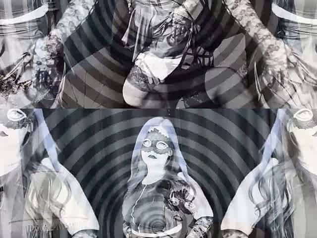 Mistress Caresses Her Feet in Black Nylon Pantyhose