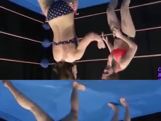 Nicole and Sumiko are wearing bikinis whilst wrestling and touching every other in nasty ways