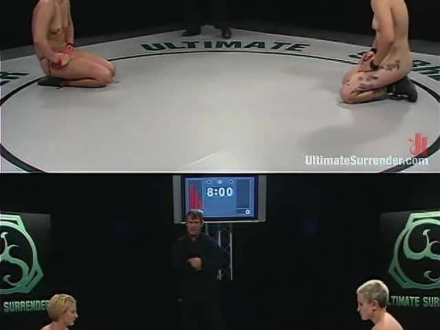 Two bitches wrestle naked in a ring!