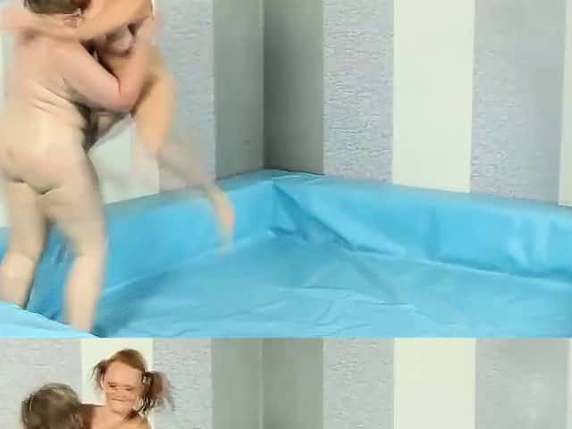 Teen girls in lesbian naked wrestling scene