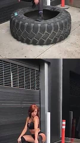Danielle Moinet modeling on a big tire