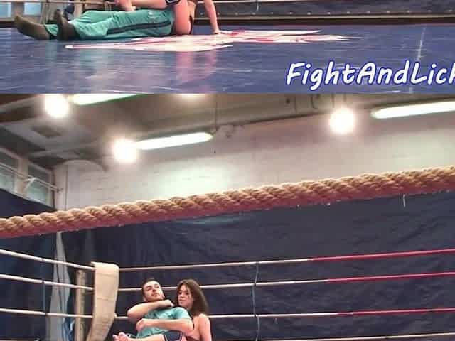 Cathy Heaven takes on James in a fierce mixed wrestling match