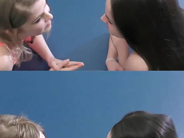 Wrestling amateur lez rubs babe wet pussy during fight