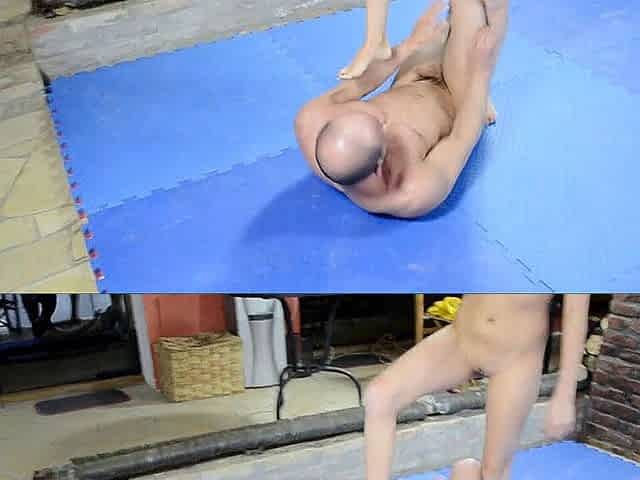Naked wrestling turns into a powerful handjob
