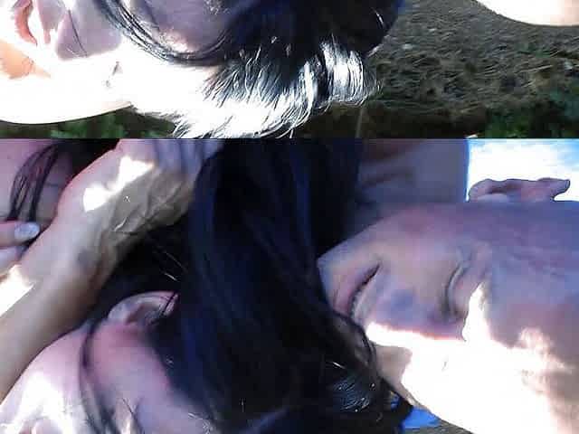 Kerstin's aggressive fighting session outdoors
