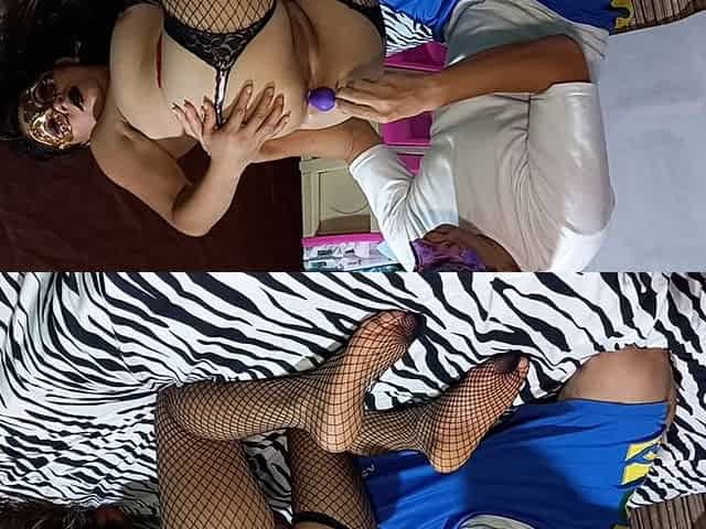 Before the anal fuck, the dildo comes first in the ass, then