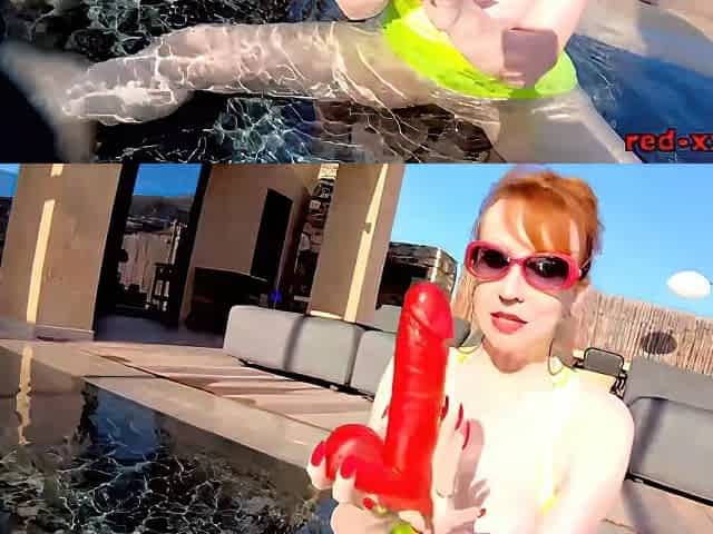 Fucks Her Pussy With A Toy In The Pool - Red Xxx
