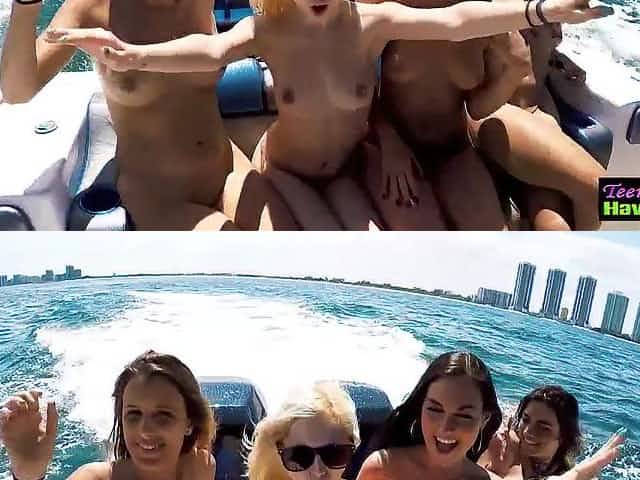 Crazy hot teens gets on to the yacht and starts the party