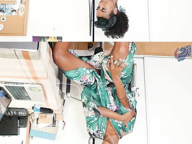 Voluptuous black honey with glasses from Yanks Natalia Johnson riding a chair to climax