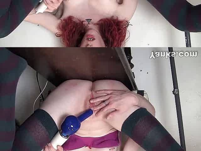 Yanks redhead Vixxxen plays with her clit