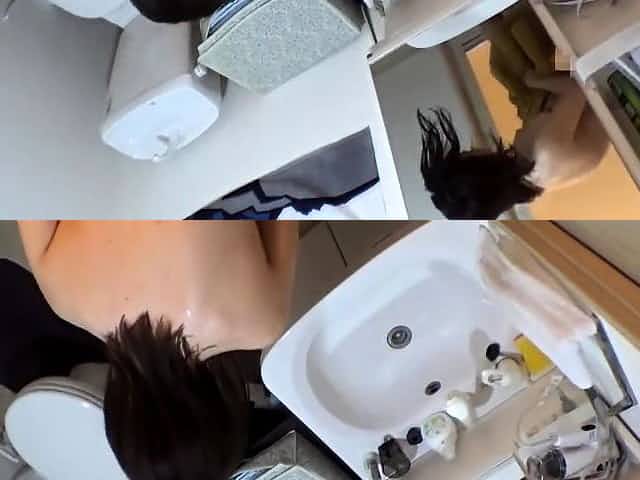 Lent over the mirror Japanese housewife Nanako Misaki is pleased by her hubby