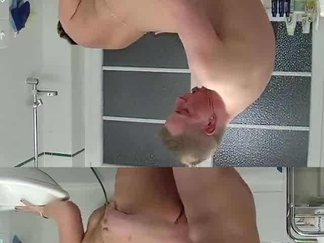 Fat Boy In Glasses Shares Shower with Busty Roommate Girl