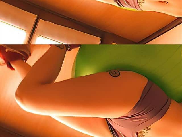Huge Natural Breasts Tattoed Teen Has Round Ass and Cameltoe