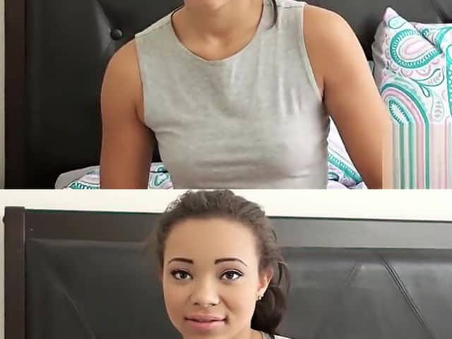 Hairy Pussy Ebony teen audition with Big Dildo.