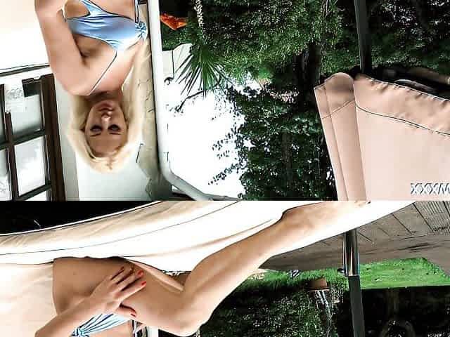 Sexy blonde college girl Sky flashes her nice ass in hot solo