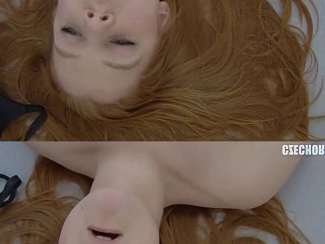 Busty redhead girl opens her tight hole on the porn casting