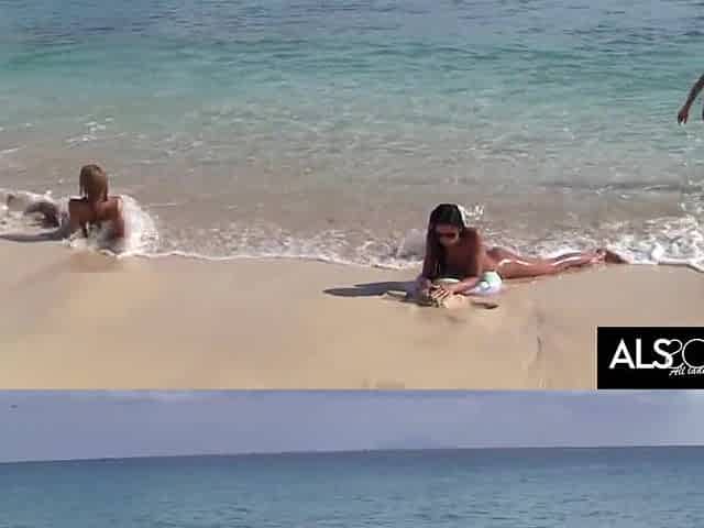 Six Lustful Lesbian babes Go At It On A Public Beach