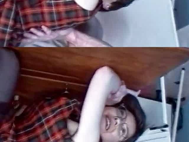 Salacious brunette in glasses moans as a thick boner penetrates her tight cunt