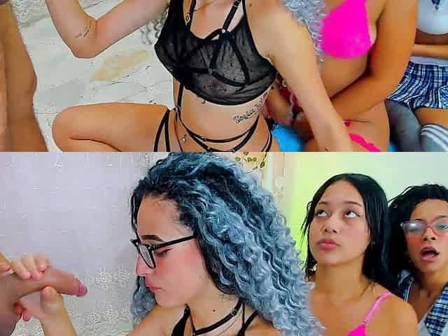 4 Horny Sluts Swallow My Entire Cock Deep In Their Throats