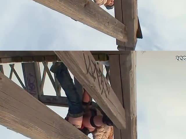 The whore is delighted with the standing fuck outdoors